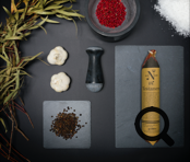Le foto, anch’esse volte al racconto dell’estrema semplicità e pulizia del prodotto. Pochi elementi, gli ingredienti, le spezie, allo stato grezzo, che si vestono di una grande dignità grazie alla luce, allo spazio nero, alle textures, e ad un richiamo di verde che rimanda all’origine rurale e naturale della famiglia che li produce. La collaborazione con lo studio fotografico di nostra conoscenza ed il confronto con la sua area creativa ha contribuito molto allo sviluppo di un primo linguaggio comunicativo dell’azienda congruo con le sue dimensioni commerciali e che non ne limita lo sviluppo nel tempo. Le immagini sono duttili sia per i profili social che per della grafica volta alla stampa come fondale o come parte della composizione, aiutano nell’architettura grafica del messaggio e valorizzano a contrasto i colori e la geometria del prodotto.